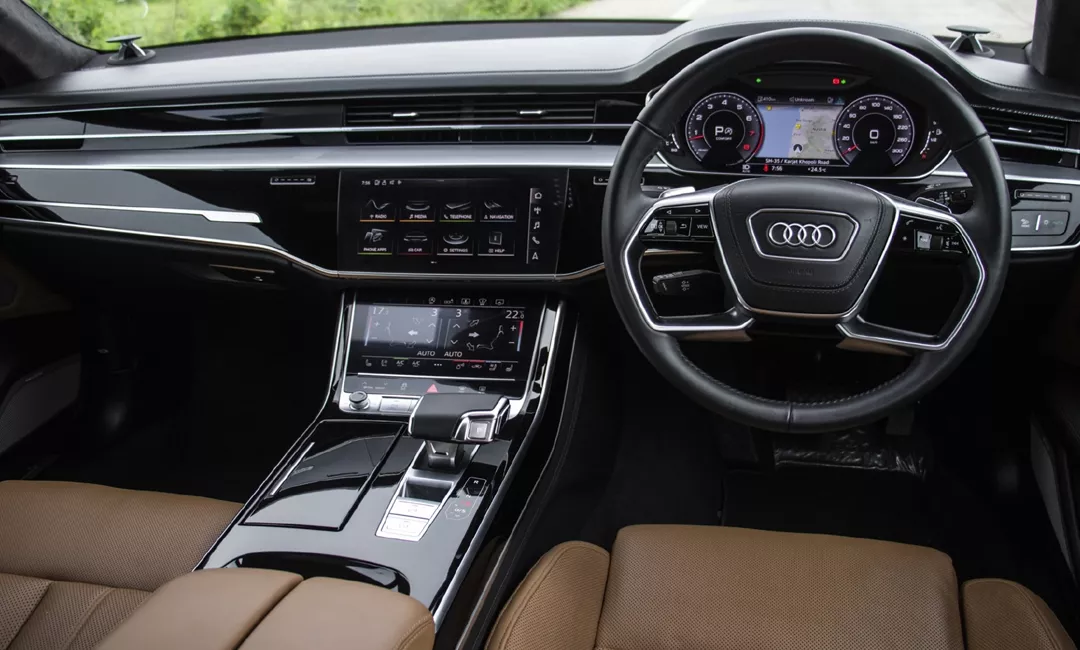 The A8 is the pinnacle of Audi’s luxury sedans: packed with tech including autonomous driving features, and redolent with luxury options—even a back-seat foot warmer. A 340-hp turbocharged 3.0-liter V-6 is standard; a 460-hp twin-turbo 4.0-liter V-8 is optional. All-wheel drive, an eight-speed automatic, and air suspension are standard. An optional suspension system scans the road for imperfections, adjusting to soak them up. A 449-hp plug-in hybrid with inductive charging is in the works.